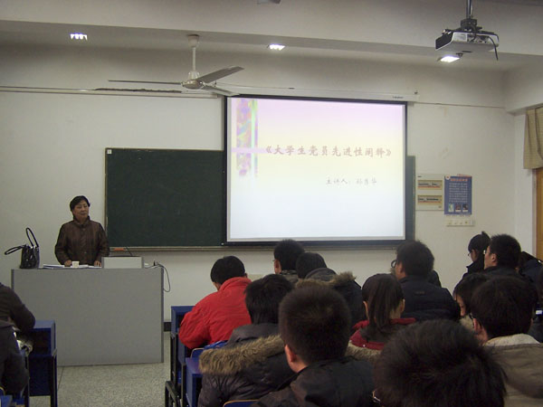 11月20日下午4:30,参加机电工程学院第四期也许党校培训的108名学员在田家炳工学院大楼507A聆听了徐州师范大学党办、校办主任孙秀华副教授做的题为“大学生党员先进性阐述”的讲座。