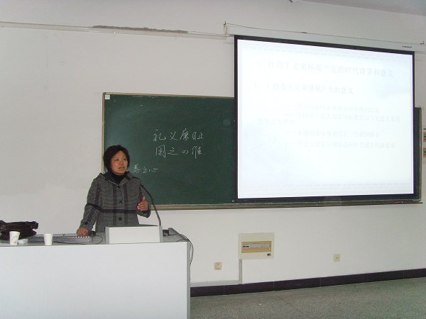 11月21日下午16:20,机电工程学院第四期业余党校培训第七讲“社会主义荣辱观与和谐校园建设”在工科大楼507A举行,此次讲座由校党委组织部副部长赵玉苏主讲。