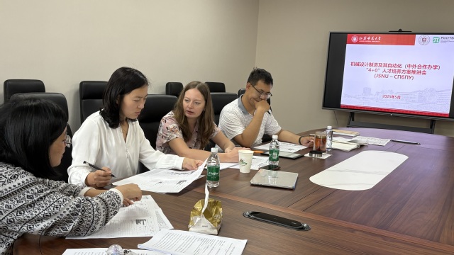 为进一步推进中外合作办学机构内涵建设,提升人才培养质量,2025年5月22日下午,江苏圣理工学院-中俄学院在西教13号楼114会议室召开机械设计制造及其自动化(中外合作办学)“4+0”人才培养方案推进会。俄罗斯圣彼得堡彼得大帝理工大学机械工程、材料与运输研究所专家Бровкина Яна Юрьевна、江苏圣理工学院-中俄学院副院长卜伟、机电工程学院副院长杨道龙以及相关教师代表参会研讨。