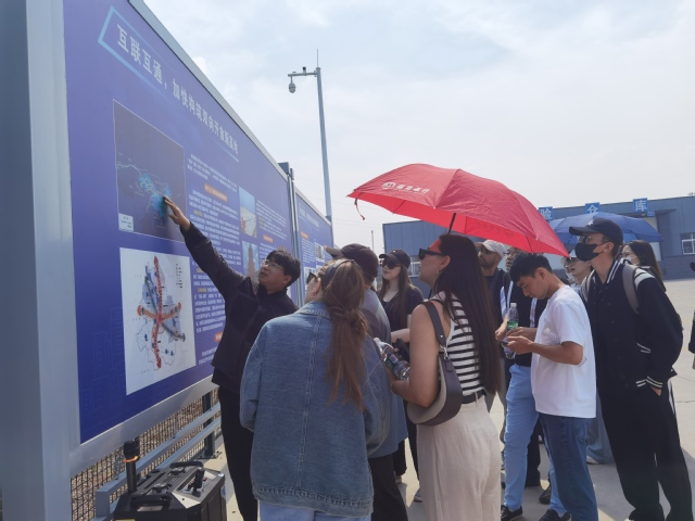 在港务区领导与工作人员的热情接待下,国际学院师生先后参观了铁路货场、两仓(出口监管仓、进口保税仓)、数字贸易产业园和供应链中心。每到一处,工作人员都以专业且耐心的态度,详细讲解相关知识。留学生们全神贯注,认真聆听,系统了解了淮海国际港务区的业务范畴、进出口通关流程及报关系统操作,还对货物入库、分拣、运输等全流程运作模式有了直观认识。