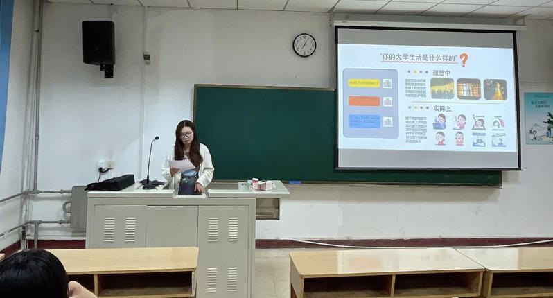 肖诗彤以“资源整合与目标突围”为主线,结合自身担任校就业与创业协会主席、参与36项志愿服务等经历,生动诠释了“生涯规划早行动”的重要性。她就如何度过充实的大学四年为话题,从“大学生活篇”“专业学习篇”“课外实践篇”三个方面进行详细讲解。她特别强调:“大一要学会用SWOT分析法筛选社团,大二大三需通过专业竞赛、志愿服务、企业实习等锤炼能力、积累经验。”现场通过展示志愿服务证书、考研复习计划表等实物,为新生提供了“目标分解-资源匹配-动态调整”的实用方法论。分享会还设置了“生涯盲盒答疑”环节,新生围绕专业学习、实习准备、考研抉择等提问,两位毕业生结合霍兰德职业测评、决策平衡单等工具进行一一解答。