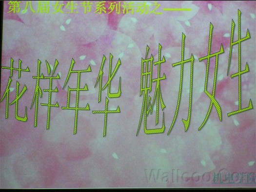 为庆祝3月7日女生节,并为我院女生搭建一个展现自己魅力的舞台,3月11日晚七点整,机电工程学院学生会在17#102C成功举办主题为“花样年华 魅力女生”的庆祝晚会。