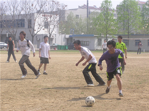 4月15日上午10点10分,工学院前的运动场迎来了08机42班和09机41班之间的足球比赛。