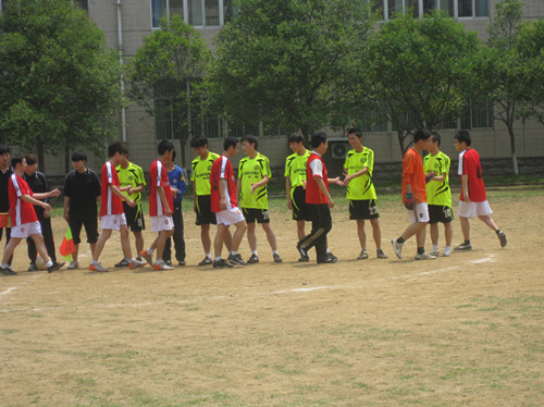 比赛开始前,双方队员互相握手致意,这一细节生动的体现出了参赛双方“友谊第一,比赛第二”的运动精神。随着裁判的一声哨响比赛开始进行。上半场开始前10分钟内,虽然双方都接连发起了猛烈的攻势,但均未能取得突破性进展。第12分钟时,我院前锋在队友的配合之下,成功的带球避过对方防守队员,在其禁区外抽脚猛射,成功拿下了该场比赛的第一分。随后我院乘胜追击,凭借默契的配合与精湛的球技再次攻破对方球门获得一分。下半场对方全力进攻,我院进行防御战。虽然其前锋曾多次带球杀入我方禁区并射门,但均被我方守门员成功将球扑出或直接抱入怀中。下半场第15分钟左右,我院换上替补队员,该队员一上场就抓住机会单刀带球杀到对方门前并射门得分。最后,我院以3:0战胜计算机科学与技术学院,获得三连胜。