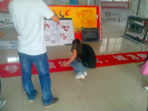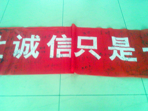 中午放学铃声响起,在工学院上课的同学们陆续走出教室来到活动地点,早已做好准备的学习部干事们主动走上前去解说此次活动的目的并诚邀同学们签名支持,同学们闻讯纷纷响应。此次活动虽然前后进行还不到十分钟,但却获得了广大学生的支持,不小的一条横幅上布满了同学们诚信考试的心迹。希望同学们一鼓作气,将之保持到最后,将诚信进行到底。