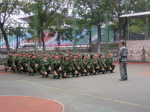 教官准时到达训练场。在复习了昨天所学内容之后,同学们就转入了新的学习。立正,稍息,四面转法,踏步走等循序渐进。在训练过程中,教官指出了某些不到位的动作,并耐心的进行演示讲解。最后,同学们学习了齐步走和正步走,整齐的队列,威武的军姿,响亮的口号,澎湃的热情,感染着在场的每一个人。