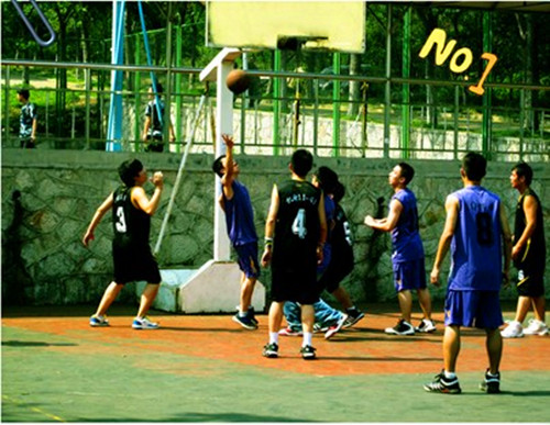9月24日中午12:40,体育馆上方的篮球场上迎来了10机41与11机41之间的首轮比赛。