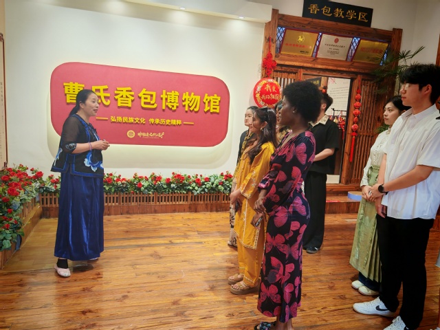 当东方香道遇见西方好奇心,非遗传承便有了世界表达。为弘扬民族文化,传承历史精粹,2025年5月29日商学院中外学生代表来到徐州曹氏香包博物馆,在药香萦绕中触摸针线里的中华智慧,以香包为媒,架起文化沟通的桥梁。
