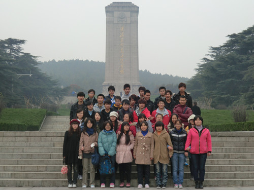 上午9点,由10级的三位学长带领,31班全体同学乘坐公交车前往徐州淮海战役纪念塔。同学们先参观了淮海战役纪念塔,瞻仰了在淮海战役中牺牲的战士的名单及关于此次战役的浮雕。随后,同学们参观了淮海战役中使用过的大炮和飞机等武器。最后,大家排队进入了淮海战役纪念馆,纪念馆中陈列了许多关于抗战时期的物品,还有许多领导人物生动逼真的蜡像。同学们非常认真的参观,感受着那种肃穆的气氛。整个过程,同学们兴高采烈合影留恋。