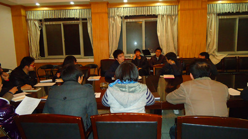 会议开始,11级各班团干部依次汇报各班级近期学习生活的近况,接着分团委成员和11级团干部针对学习经验﹑考试经验﹑班级管理﹑学生管理等进行了详细的讨论与交流,分团委副主席张斌斌向11级团干部详细的介绍了本学期班级团干部中心组学习主题及如何写主题报告的具体细节和注意事项,最后会议确定了分团委近期要开展的工作——以学习交流为主的学风建设活动和“建党90周年”主题团日活动。