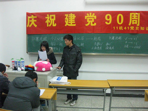 在建党90周年之际,为强化机电工程学院学生对党史知识的理解,拉近同学们与党的关系,机电工程学院11机41班于12月8日晚上7点在工学院306C举办了党史知识竞答活动。