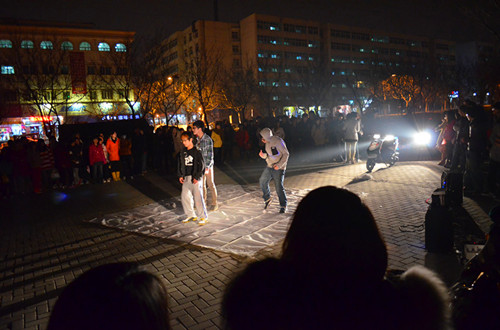 夕阳西下,寒意渐深,但这丝毫不能掩盖同学们火热的内心。表演前的准备工作在紧锣密鼓地进行着。晚7点整,随着D.F.F街舞社表演的群舞,演出正式开始了。刚开始,同学们有些拘谨。但随着观众的聚集,作为舞者的激情在他们身上迸发了。在音乐中,他们开始展现各自的绝技。他们的舞步变化莫测,他们的动作让人眼花缭乱,他们的表演让人惊叹。期间,有舞者甚至展示了BACKSPIN、DOWNROCK等高难度动作,博得了观众们最热烈的掌声和欢呼。最终,演出在9:30顺利结束。此次活动不仅增进了各高校友人间的友谊,还将为我们的青春生活添上浓墨重彩的一笔!