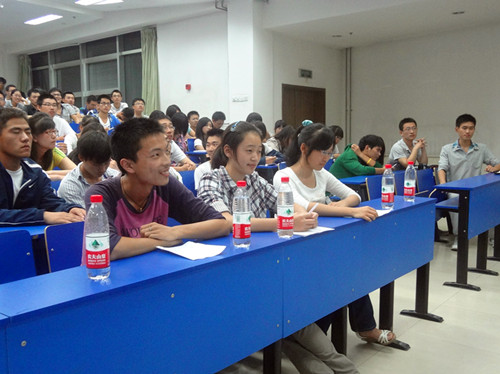 本次活动由学习部部长于孔孟主持,活动邀请了各级学长学姐与新生交流学习、生活的经验。学长、学姐们精彩纷呈的演讲博得同学们的阵阵掌声。从学习方法到生活态度,他们的一席话让同学们胜读十年书。针对大学的不同阶段,他们用自己的切身经历和感悟为大一新生撰写锦绣箴言。他们为新生指明了大学生活的方向。针对考研,学长学姐们淡了很多,他们的话解决了新生们对于考研的许多疑惑。活动中,同学们听得非常认真,两个小时的交流会似乎过得很快,整个会场一直保持着和谐融洽的氛围。