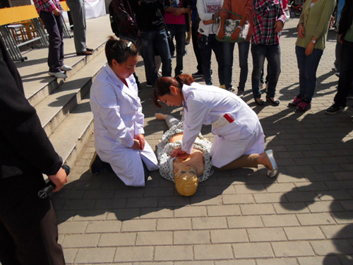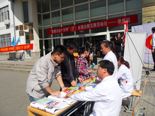 为提高我院同学应对突发事件的能力,10月10日上午9:45,我院联合徐州多家医院在工学院前举行了“急救白金十分钟”活动。