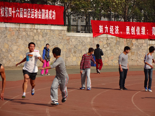 11月1日上午8点,我校第四十六届田径运动会进入了第二日的赛程。一大早,看台上已经坐满了前来加油的同学。刺骨寒风阻挡不住他们加油的欲望,也熄灭不了他们为我院健儿呐喊的热情。操场上,运动员们也早已做好了准备,跃跃欲试。