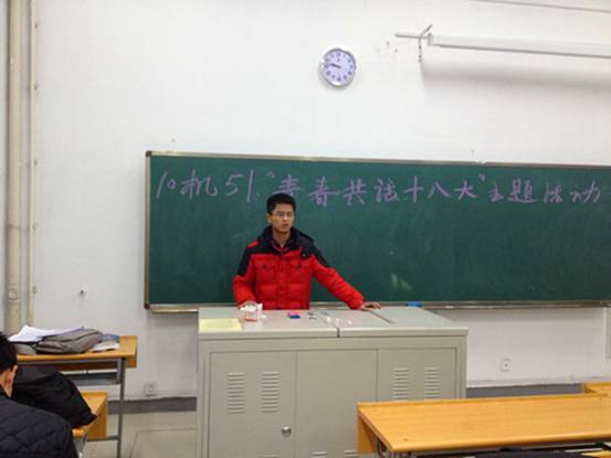 为庆祝中华人民共和国第十八次全国人民代表大会的召开,加强同学们对十八大的了解,端正同学们的学习态度,听从党的领导,机电工程学院10机51班于12月10日上午9:30在工学院104D举办了“青春共话十八大”主题班会。10机51班团支部书记王连主持了这次会议。