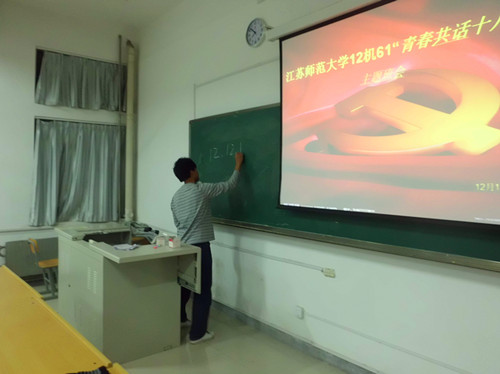 会议之初,主持人李长青同学首先为全班同学播放了关于十八大出席仪式及其教育的微电影。看完视频后,同学们都深有感触,踊跃发言,争相表达自己的想法。之后主持人又与全班互动,提问有关党的基础知识,现场气氛十分高涨。最后,同学们以互相举荐的方式阐述了关于十八大的看法,以及对于美好未来的期待与向往。