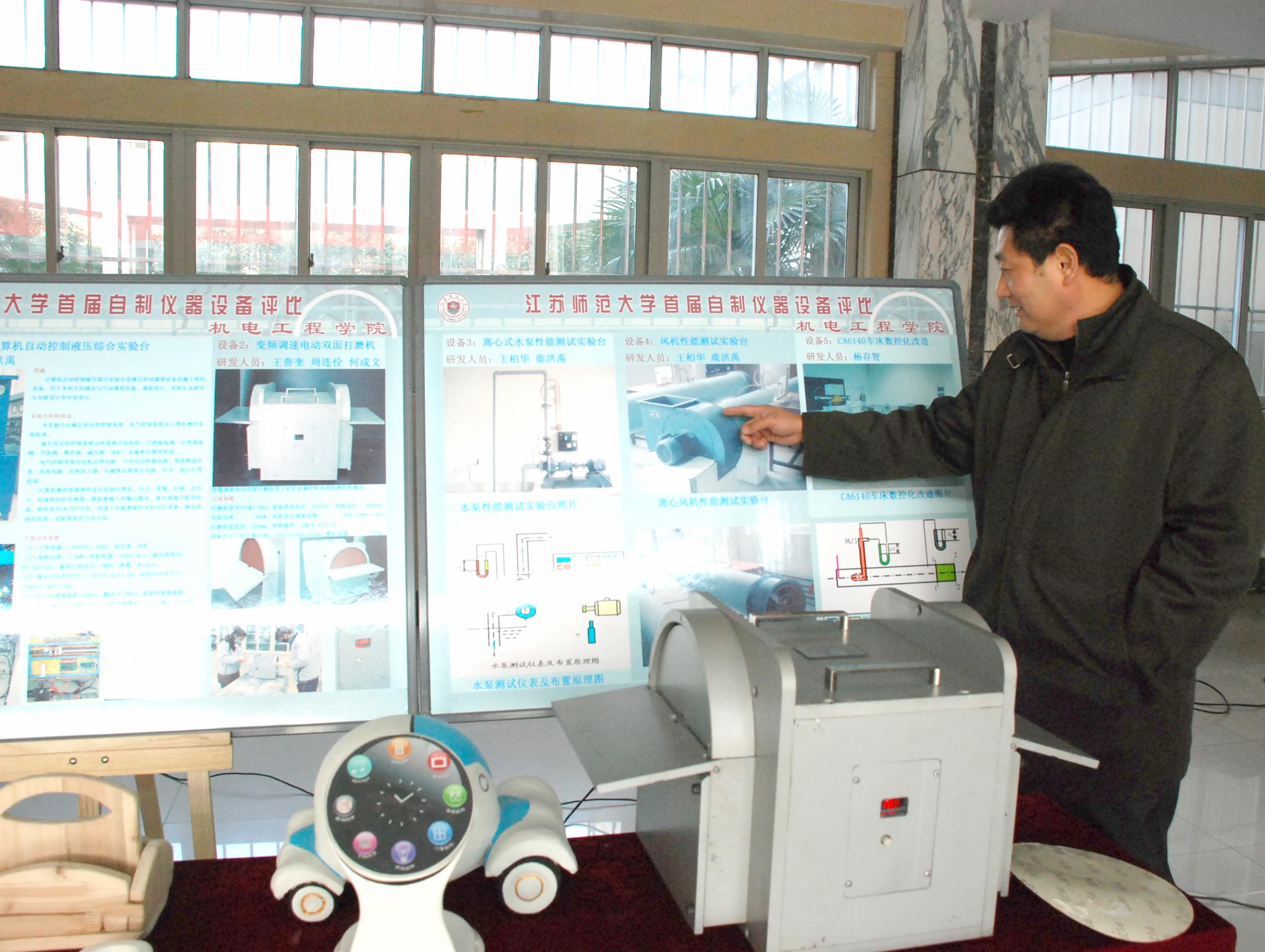 2012年12月18日下午,在我校泉山校区田家炳工学院楼一楼大厅江苏师范大学开展首届自制仪器设备评比展示活动。我院携五项自制仪器设备