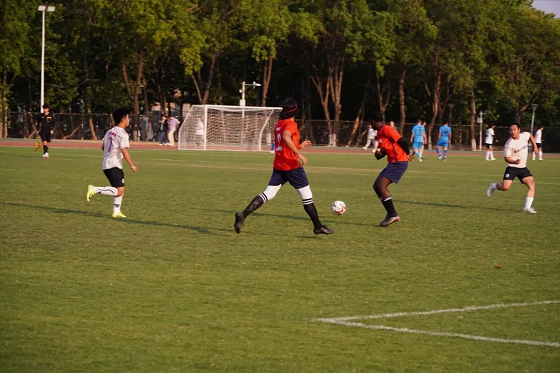决赛中,机电工程学院与国际学院上演强强对话。比赛伊始,双方迅速进入状态,展开激烈争夺。机电学院队积极组织攻势,国际学院队防守严密、反击犀利。后面比赛愈演愈烈,国际学院展开猛烈攻势,即便队员体力消耗巨大,机电学院队依然顽强抵抗,全力争胜。他们用热血与汗水,为观众呈现了一场精彩绝伦的足球对决。
