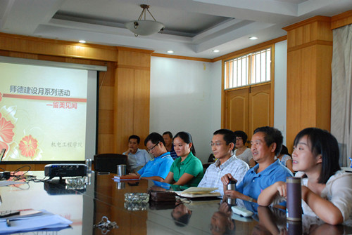 为切实做好以“立德树人,成就梦想”为主题的第14个师德建设月暨庆祝第29个教师节系列活动,机电工程学院于九月二十五日下午,在学院会议室组织开展了师德建设月系列活动之 “留美见闻”交流会。机电学院党委书记施春华、副书记于如信、副院长王柏华、邢邦圣及全院职工共五十余人参加了此次活动。