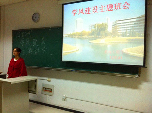 十一月十四日晚七点半,我院12机41班为积极响应学校的学风建设号召,于工学院102C召开学风建设主题班会。此次班会由团支书申彤主持。
