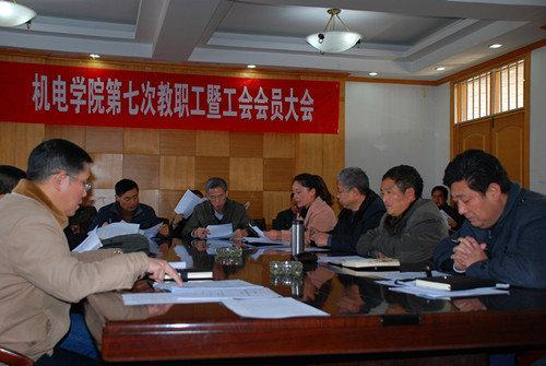 2014年1月15日下午,机电工程学院第七次教职工大会暨工会会员大会在学院会议室隆重召开。会议由院党委施春华书记主持,韩继光院长、王柏华副院长、邢邦圣副院长、梁莉副书记以及机电工程学院全体教职工出席了本次会议。