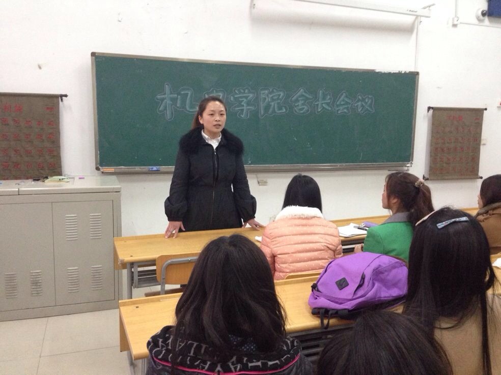 为迎接学校学风建设,加强我院学生宿舍管理,着力打造文明温暖宿舍,机电工程学院瞄准“宿舍”这一最小集体单位,聚焦“舍长”这一特殊群体,于2014年3月3日下午5:10在工学院103C召开了全院宿舍长会议。力图整合最小单位,集聚力量,发挥事半功倍的作用。学院党委梁莉副书记、辅导员朱悦老师、项楠老师参加了此次会议。