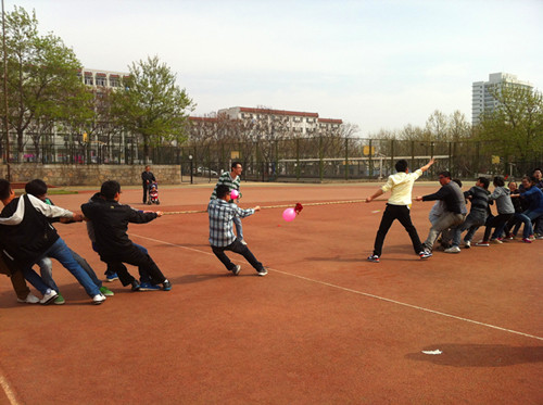 为增强我院学生体育锻炼意识,增进同学们之间的交流,培养彼此之间团队协作能力。4月20日上午八点半,我院在校田径场举行户外素质拓展活动。参加此次活动的有我院11级和12级八个班级的同学,各活动项目的裁判由院学生会的部长担当。