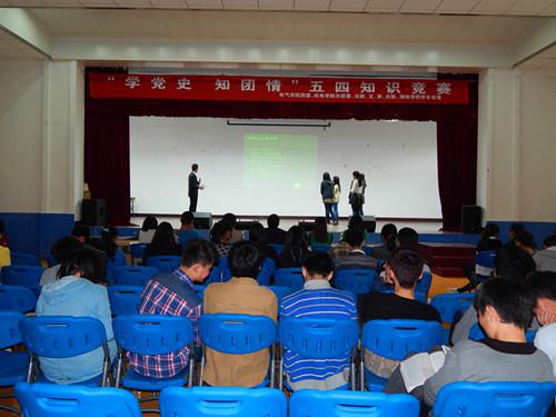 为响应共青团的号召,调动同学们学习五四知识的热情,427日下午在贾汪校区大活中心,我院联合电气、法政、文学院、商学院、历旅学院及测绘学院举办了“学党史 知团情”五四知识竞赛活动。我院辅导员朱忠君、学工办姚峥嵘老师以及各个学院的学生会代表作为嘉宾出席了此次竞赛活动。