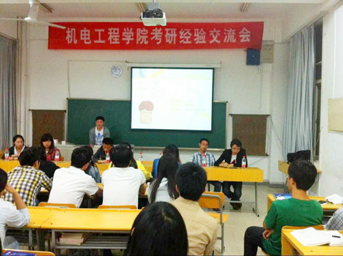 今年,机电工程学院考研再创佳绩,65名报考者中有30名同学分别被同济大学、东南大学等高校录取。为进一步发挥榜样的力量,为同学们搭建考研交流的平台,5月15日晚,机电工程学院在田家炳工学院举办了2014届考研经验交流会暨2015届考研动员大会。