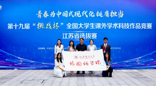在第十九届“挑战杯”全国大学生课外学术科技作品竞赛江苏省选拔赛决赛中,由外国语学院于涛、蓝博和李晓宇老师指导,徐安琪、雷振权、陈晚、赵楚楚、梁瑞鑫,罗紫绮,吴嘉莉参与的《从“东方来客”到“命运同路人”——基于中拉16国2103位文明对话使者的十年话语分析和调查互证研究》项目荣获特等奖,推荐参加全国比赛。