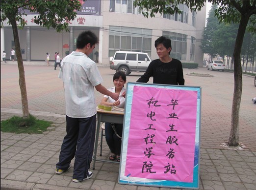 为了给毕业生顺利离校提供帮助,623日,机电工程学院青年志愿者大队在杨翠老师的带领下,于三食堂门前举办为期两天的“送毕业生服务站”活动。