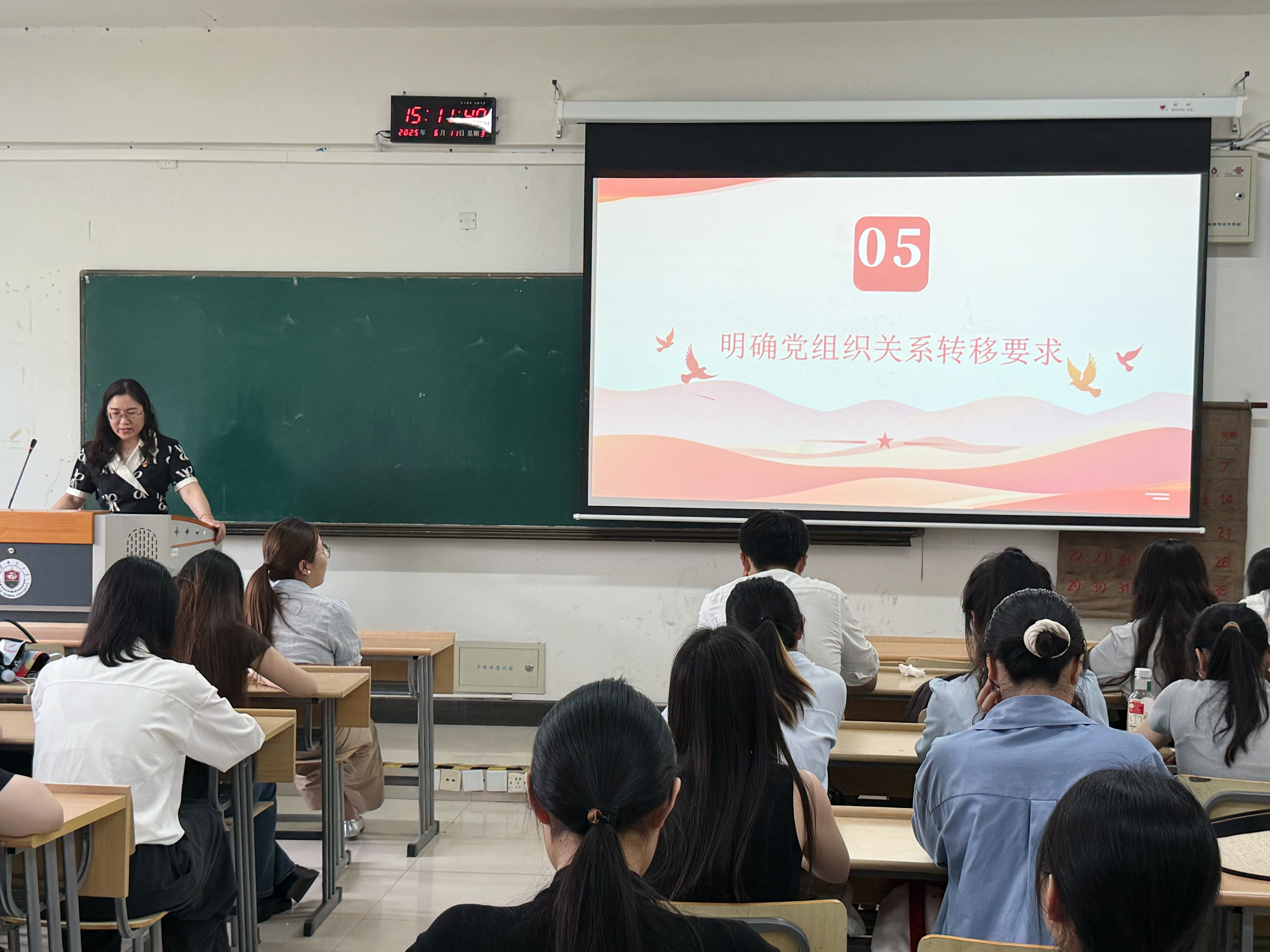 会上,全体党员重温了入党誓词。彭晨鼓励毕业生党员要深入学习贯彻主题教育精神,锤炼优良工作作风,永葆党的先进性与纯洁性,在新的岗位上为党和人民事业贡献青春力量。毕业生党员代表表示,走出校园后,将以更高标准要求自己,发挥党员先锋模范作用,影响带动身边人,推动形成积极向上的社会风气。