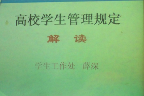 整个讲座持续了一个半小时。经过薛处长耐心细致的讲解,我们相信新生在以后的学习、生活中一定能够更好的严格要求自己,做一个文明守纪的大学生。