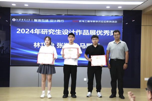 现场进行了隆重的颁奖仪式。吴迪部长为优秀导师组组长郭永环教授、宋端树教授颁奖;李顺才院长为获得2024年研究生优秀科研成果奖的朱志伟、芦艳斌、纪博文同学颁发荣誉证书;杨道龙副院长为获得2024年研究生设计作品展优秀奖的林巧仪、张祺淳、马鹏豪同学颁奖。