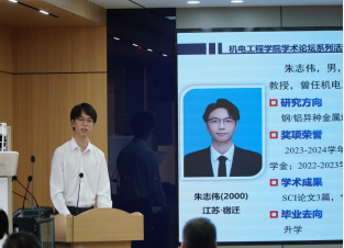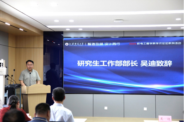 学校研究生工作部部长吴迪致开幕辞。吴部长表示,本届论坛以“智造引领,设计同行”为主题,可谓立意高远,紧扣时代脉搏,论坛聚焦机械工程设计等领域的前沿发展与关键技术挑战,为全院师生搭建了高水平的学术交流平台,科研成果的展示舞台和思想碰撞的宝贵契机。他指出,机电工程学院一贯视研究生培养与管理工作,近年来学院研究生的科研成果持续涌现,培养质量不断提高。2024年机电学院研究生考博率(35.71%)高居全校榜首,希望学院全体师生充分利用本次论坛契机,广泛交流真知灼见,开拓学术视野,激发创新思维,力争在科研探索与人才培养上取得更加丰硕的成果!
