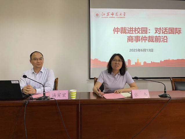 2025613日下午,由中国国际经济贸易仲裁委员会江苏仲裁中心、江苏省国际商事法律服务中心、江苏师范大学法学院、江苏涉外法治人才协同培养基地及江苏师范大学涉外法治研究中心联合举办的“仲裁进校园:对话国际商事仲裁前沿”活动在江苏师范大学法学院成功举行。