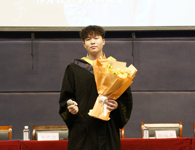 毕业生代表2022级电子信息(控制工程)专业研究生王建飞同学满怀感恩之心,深情致谢学院的悉心培养、师长的谆谆教诲及同窗的真挚情谊,立志在未来的征程中继续勤勉耕耘、阔步向前,永怀对学术与人生的炽热激情。2021级人工智能专业本科生刘甄子同学分享了从大一懵懂到大四惜别的成长历程,祝福同窗前程似锦、母校再谱华章。