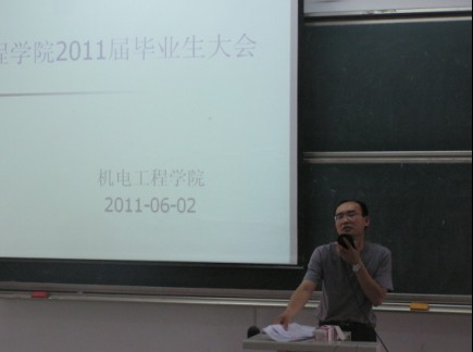 为了切实做好2011届毕业生的思想政治教育工作,引导毕业生树立正确的世界观、人生观、价值观和职业观,进一步增加广大毕业生与学院的感情,倾听毕业生的意见与建议,教育引导毕业生,我院于6月2日上午10:00在17#100B举行了“机电工程学院2011届毕业生大会”。大会由院团委老师杨翠主持,学院党委副书记于如信、党支秘书张永伟、辅导员姜海波参加了此次专题教育活动。