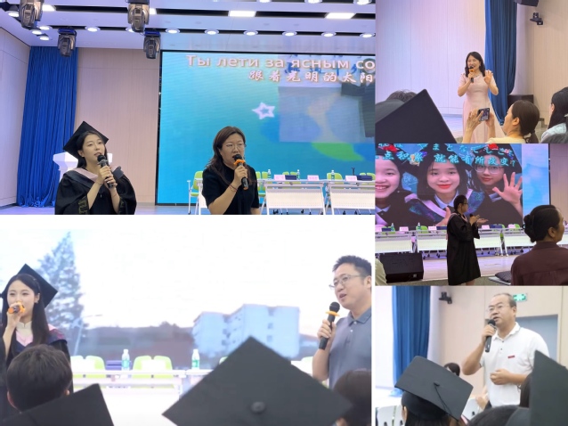 王蕾老师、林春泽老师、杨柳老师和王聪老师与毕业生代表倾情演唱的日、俄、英多语种歌曲,与同学们共同回顾在外院的青春岁月,感受外语人的执着与热爱,铭记这段难忘的时光。