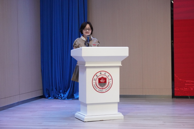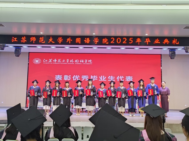 翻译系张宁老师作为教师代表发言。张老师代表全体教师向顺利毕业的2025届毕业生们表示热烈祝贺,寄语“毕业不是终点,而是征战世界的第一个动词”。外语人不只是工具人,更是文化的解释者和世界的改写者。希望苏师外院的毕业生们在多元文化碰撞中坚守中国立场,在文化差异的沟通中走向更广阔的天地。