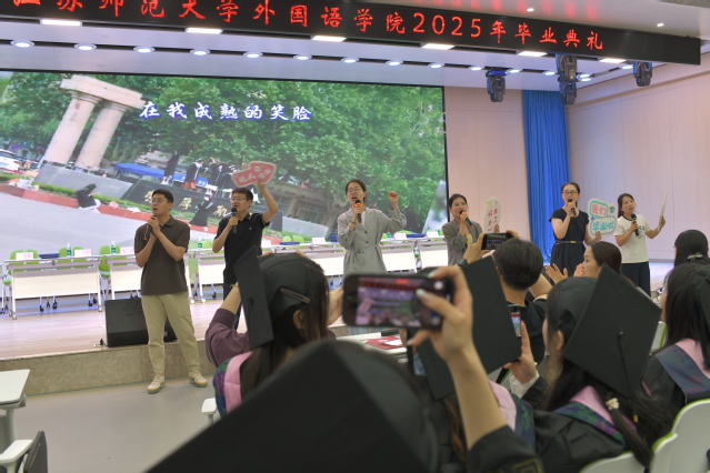 全体辅导员演唱的歌曲《飞鸟和蝉》寓意着毕业生们从青涩到成熟的蜕变,如同飞鸟展翅翱翔,蝉鸣声中迎接新的季节,为即将离校的毕业生们送上了最美好的祝福。