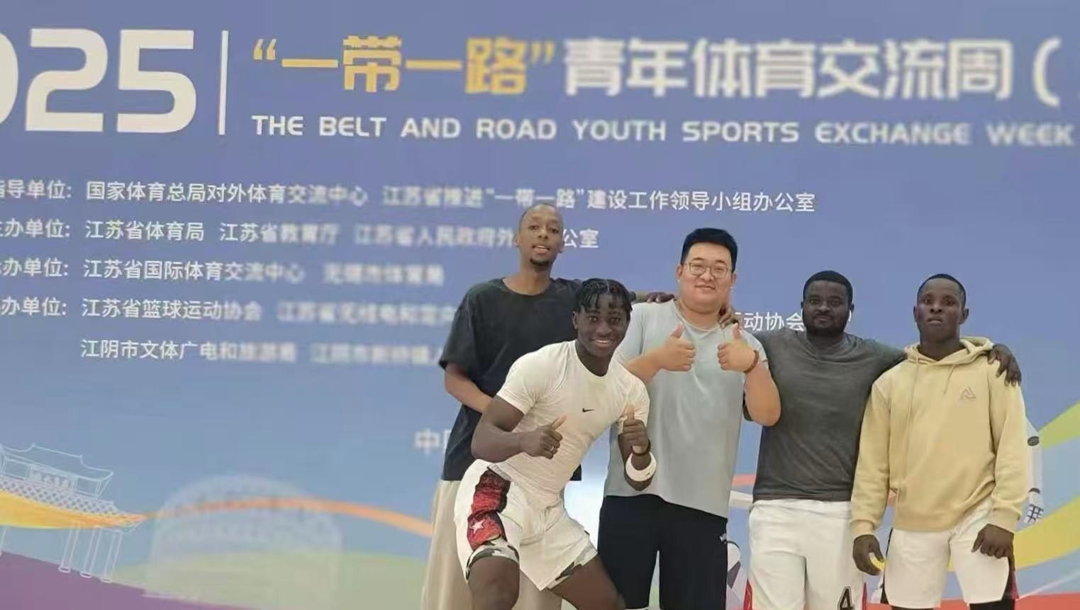 近日,由江苏省体育局、江苏省教育厅及江苏省人民政府外事办公室主办的2025“一带一路”青年体育交流周(江苏)活动在江阴拉开帷幕。本届活动以“结缘新江苏,激扬AI青春”为主题,吸引来自全球66个国家和地区的500余名国际青年参与。我校首次选派来自赤道几内亚、利比里亚、卢旺达、坦桑尼亚四国的4名国际学生组队参加“一带一路”国际青年3X3篮球邀请赛,凭借出色表现成功跻身四强,实现国际体育交流“首秀”即获突破性成果。