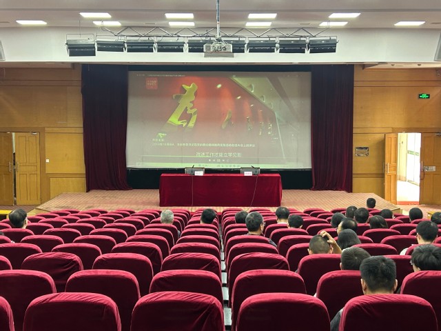 会前,全体教职工集中观看《八项规定改变中国》纪录片。