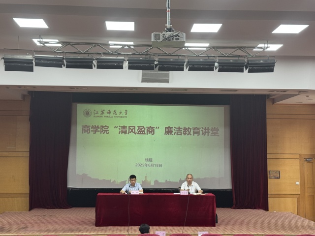6月18日,商学院在敬文报告厅开展“清风盈商”廉洁教育讲堂暨全体教职工大会。学院全体教职工参会,会议由院党委书记钱程主持。