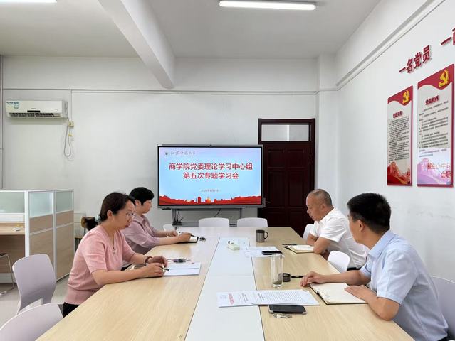 6月18日,商学院召开6月份党委理论学习中心组专题学习会,深入学习领会习近平文化思想,院党委理论学习中心组全体成员参加学习,会议由院党委书记钱程主持。