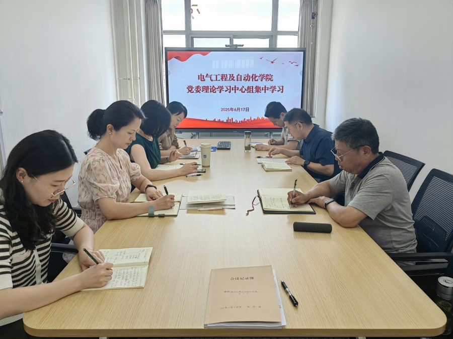 6月17日上午,电气工程及自动化学院党委理论学习中心组开展专题学习,深入学习领会习近平经济思想和习近平总书记关于加强党的作风建设的重要论述,院党委理论学习中心组全体成员参加学习研讨,党委书记潘震鑫主持会议。
