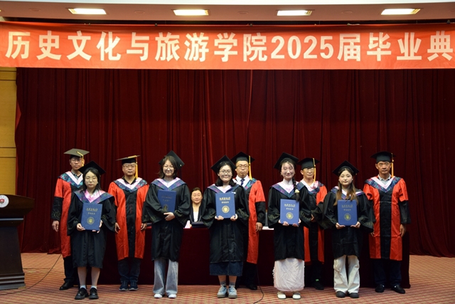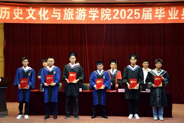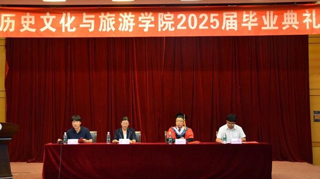 6月12日下午,历旅学院2025届毕业典礼在敬文报告厅举行。历旅学院党委行政班子、教授委员会成员及教师代表、家长代表、2025届全体研究生和本科生毕业生参加典礼,院党委副书记杜登主持典礼。