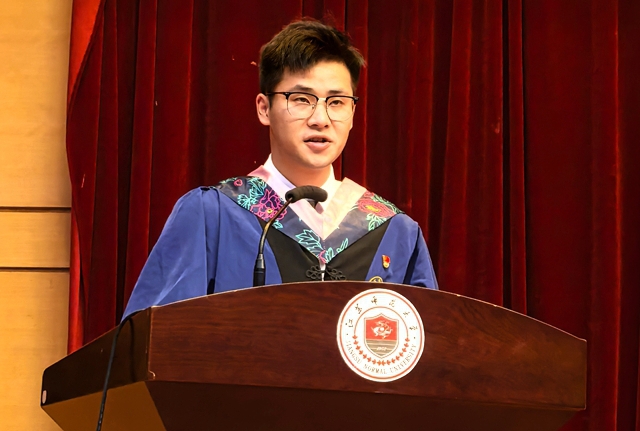 毕业研究生代表王航和本科生代表卢冠宇相继发言,两位同学分别回顾了在校生活、学习的难忘情景,诉说了对母校、对师长、对同学的依依不舍之情,衷心感谢老师的培养,并表示未来将继续心怀使命,勇于担当,做好表率,用实际行动回报母校的培养和家长的期待,努力实现自己的人生价值。