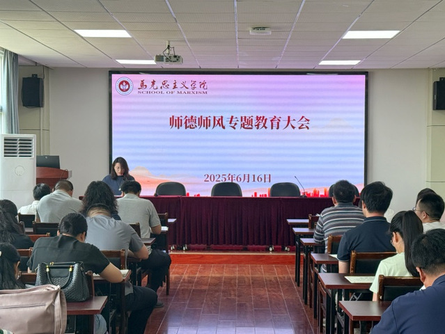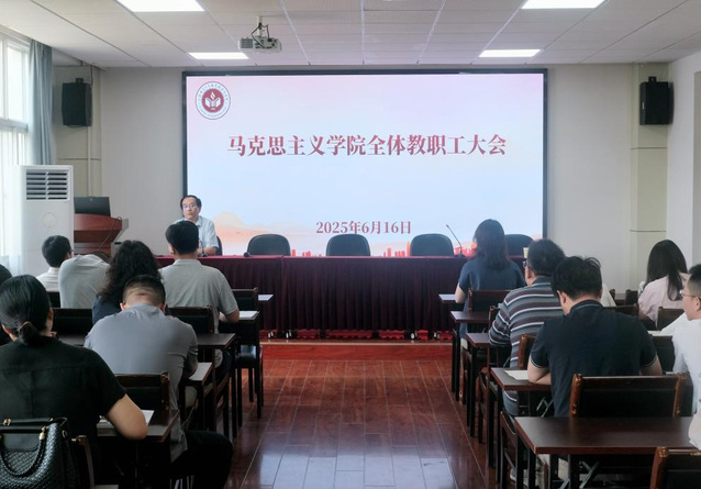 6月16日下午,马克思主义学院召开全体教职工大会暨师德师风专题教育大会、安全警示教育会议。院党委副书记文雯主持会议,院领导班子及全体教职工参会。